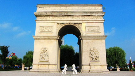 凱旋門是為了紀(jì)念拿破侖一世在1805年12月2日的一次戰(zhàn)役中大敗奧俄聯(lián)軍的勝利而建的。在1806年2月12日,根據(jù)拿破侖一世親自批準(zhǔn)的計(jì)劃,按照著名設(shè)計(jì)師戛爾格蘭的設(shè)計(jì)圖紙施工,歷時(shí)30年,于1836年7月29日竣工。八里河風(fēng)景區(qū)的雄獅凱旋門是按原建筑的1/3縮小。