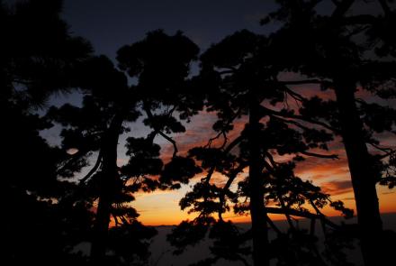 牯牛降峰峰有青松,無松不奇異,牯牛松漫山遍野,郁郁蔥蔥,樹冠如華蓋,干枝似虬龍,或怪獸張牙舞爪,或仙女廣袖輕舒,有的游龍走蛇,有的鳳凰展翅,千姿百態(tài),各顯神奇。雖沒有黃山上的松樹名氣大,卻比其更多一份天然情趣。那“連理松”本是兩株,日久天長長成一體,“在地愿為連理枝”,美好的愿望在這里得到印證;“探海松”長在危崖之上,主桿挺直,枝椏都曲曲折折探出崖外老遠;在一塊突出的巖石上,一松兀立如同雄鷹,那神情恰似一幅國畫鷹石圖;更令人嘆為觀止的是一株長在大石墩上的千年古松,高不到1米,卻有九枝十八丫,枝丫都長達數(shù)米,伸出老遠,枝干長滿著金黃色的蒼苔,遠遠望去,活象一條金甲巨龍盤于石上,有人名其為“蟠龍松”,甚至認為此為天下第一奇松。嘆曰:牯牛降的黃山松姿態(tài)奇特,單株絲毫不遜色于黃山上的名松,而浩瀚的牯牛松林海,卻是黃山所沒有的。