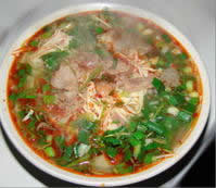 淮南牛肉湯選料講究,取制江淮一帶的黃牛為原料,用牛骨頭熬湯,煮牛肉時(shí)必須浸泡血污,內(nèi)臟清洗干凈,均可下鍋同煮,還用自制的牛油,將炸制好淮椒(紅干椒)做成紅油。牛肉湯故以湯為主,湯不醇則無(wú)味,然牛肉湯的燙制方法多樣,都取用當(dāng)?shù)靥禺a(chǎn),淮芋粉、綠豆餅、豆腐皮(干章、百頁(yè))、豆圓子等為輔料;茨吓H鉁o人的感覺是:湯濃醇鮮,香辣適口,原料豐富,味足味厚,令人回味無(wú)窮,四季皆宜。