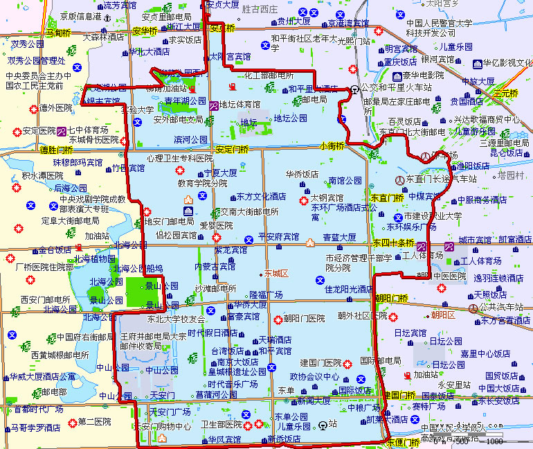 東城區(qū),隸屬于北京市,位于北京市東部中心區(qū)域,東、北與朝陽區(qū)接壤,南與豐臺區(qū)相連,西與西城區(qū)毗鄰,東西最大距離5.2千米,南北最大距離13千米,總面積41.84平方千米。東城區(qū)下轄17個(gè)街道。東城區(qū)常住人口70.4萬人。