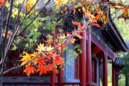 中路的蝠池,形似蝙蝠,汪汪一碧。春天到來的時候,池子周邊的榆樹結(jié)滿成串的“榆錢”,紛紛落入水中。這蝙蝠的“蝠”和榆樹的“榆”合起來,就是“富裕”的諧音!皥D必有意,意必吉祥”在造園中得到了靈活充分的運用。