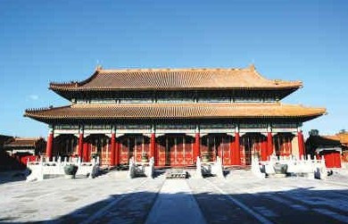 在故宮“內(nèi)庭”最后面。重檐廡殿頂。坤寧宮是明朝及清朝雍正帝之前的皇后寢宮,兩頭有暖閣。清代改為祭神場所。雍正后,西暖閣為薩滿的祭祀地。其中東暖閣為皇帝大婚的洞房,康熙、同治、光緒三帝,均在此舉行婚禮。