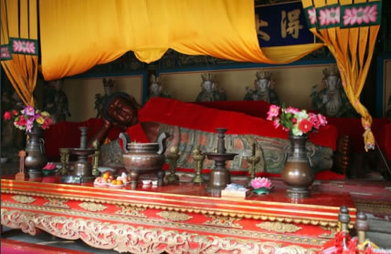 俗稱臥佛寺,位于海淀區(qū)香山壽安山南,始建于唐,清雍正十二年(1734年)大修后賜名“十方普覺(jué)寺”。全寺規(guī)模宏大,總體布局和建筑配置一定程度上保留了唐宋寺院的特點(diǎn)。臥佛殿內(nèi)的銅質(zhì)臥佛為元代遺存,長(zhǎng)5.3米,高1.6米,重4噸,頭朝西面,面向南,鑄造精良,是中國(guó)現(xiàn)存最大的銅質(zhì)臥佛,具有較高價(jià)值,也是科技史研究的重要實(shí)物資料。