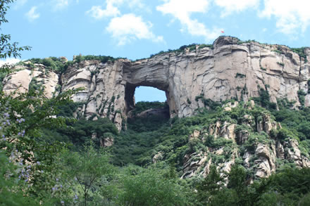 北京天門山風(fēng)景區(qū)坐落在風(fēng)景秀麗的北京市密云區(qū)石城鎮(zhèn)柳棵峪,距離北京東直門約80千米。為國(guó)家AA級(jí)景區(qū)。是以美麗壯觀的花崗巖地貌和獨(dú)特的變質(zhì)核雜巖構(gòu)造觀為主結(jié)合溪水潭穴、象形石、原始次生林等景觀的地質(zhì)公園。天門山西壁是國(guó)家級(jí)花崗巖地質(zhì)景觀,景區(qū)內(nèi)有不同年代崩塌堆積形成的各種花崗巖洞穴、象形石,是一座不可多得的地質(zhì)博物館。