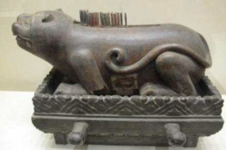 為中和韶樂樂器,“八音”中木制樂器,用于止樂。伏虎狀,背上列齟齬,趺三層,列崇牙,旁飾兩耳,用以置籈。中和韶樂中設(shè)柷、敔各一,分別由一人演奏。作樂時(shí),舉麾則擊柷三聲,樂曲即開始。樂曲結(jié)束時(shí),用籈逆刮虎背木齒三聲,樂曲即結(jié)束。