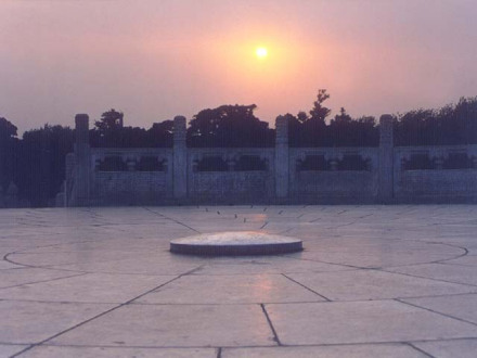 天心石位于圜丘壇中心,從星象角度觀察,天心石的位置與天皇大帝星的坐標(biāo)相互對(duì)應(yīng)。
