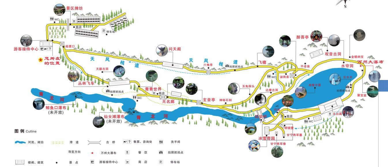 重慶萬州大瀑布群旅游區(qū)山青、水秀、瀑寬、洞奇、潭幽、湖大、虹美,共有大小景點50多個。大瀑布群呈三級梯級瀑布群,沿青龍河由上而下至瀼渡長江口,分別有萬州大瀑布、仙女灘瀑布、鯨魚口瀑布,全長約12千米,對外開放的是萬州大瀑布核心景區(qū)。還有甘寧將軍墓(衣冠冢)、甘寧將軍塑像、醉吟廊、何其芳故居等人文景點。