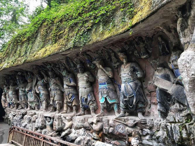 大足石刻位于重慶市大足區(qū)境內(nèi),是唐、五代、宋時(shí)所鑿造,明、清兩代亦續(xù)有開鑿,F(xiàn)為世界文化遺產(chǎn),世界八大石窟之一。