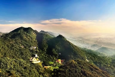 獅子峰因一峰獨(dú)秀,歷來是歌樂山俯瞰遠(yuǎn)眺和聆聽“歌樂靈音”的絕佳之處。獅子峰觀景平臺,近可觀歌樂美景、嘉陵夕照,遠(yuǎn)可眺北部新區(qū)、渝中半島;站立平臺,文化名區(qū)、六所高校一覽無遺,一江如帶,山城雄臥,渝州勝景盡收眼底。