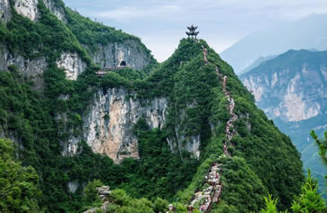 絕壁棧道位于龍缸景區(qū)映月洞至奓口石的游步道中,在數(shù)百米的懸崖上建設(shè)長(zhǎng)約3320米的空中絕壁棧道,其中200米為全透明玻璃棧道。棧道分為牽手棧道和月影棧道兩個(gè)部分,徒步其間,一側(cè)是千尺奇峰,一側(cè)是深谷澗壑,仿佛驚險(xiǎn)地行走在天地之間。