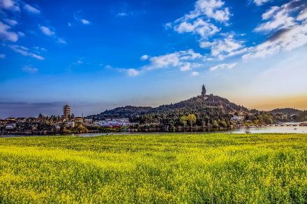 景區(qū)既是宋初著名道教學(xué)者和道教詩人陳摶的故鄉(xiāng),又是“中國最美油菜花海”。油菜花核心區(qū)種植面積達(dá)3萬余畝,其中以油菜為主要背景、小麥為配景種植的中國最大油菜花太極圖案,直徑達(dá)236米。花海泛舟,春風(fēng)佛面,清澈的瓊江穿境而過,形成了“十里菜花、黃金鋪地”的壯美景觀。2008開始,已經(jīng)連續(xù)舉辦了十二屆菜花節(jié),2009年,潼南油菜花景區(qū)被評(píng)為“中國最美的油菜花!敝,2010年被評(píng)為“重慶十大春季旅游目的地”之一。