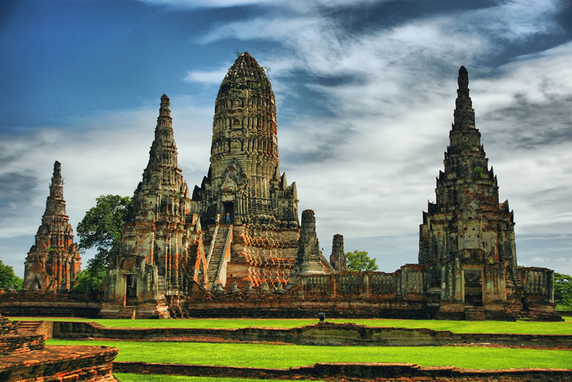 大城府(Phra Nakhon Si Ayutthaya) 大城府位于泰國(guó)中部,下轄16個(gè)縣,面積2556.6平方千米,人口約80萬(wàn)。在泰國(guó)首都曼谷以北約80千米,湄南河、華富里河、巴塞河三河交匯,形成了一個(gè)天然河流島。漫步島上,一座座古老佛塔和寺廟,磚紅色的殘?jiān)珨啾陲柦?jīng)風(fēng)霜,訴說(shuō)著這里曾經(jīng)的輝煌。這里是泰國(guó)世界文化遺產(chǎn)之一——大城古城遺址的所在地。 大城古城始建于1350年前后,是泰國(guó)歷史上第二個(gè)封建王朝大城王朝的國(guó)都。14至18世紀(jì),大城是一座繁榮富裕、人口稠密的大都市,同時(shí)也是重要的商業(yè)和宗教中心,僅主島區(qū)域的各式建筑就有超過(guò)3000棟。1767年,大城因戰(zhàn)爭(zhēng)而損毀,只有石質(zhì)佛塔、寺廟和宮殿得以保存。從1935年開(kāi)始,泰國(guó)文化部藝術(shù)廳陸續(xù)開(kāi)展對(duì)大城古城遺址的挖掘和保護(hù)工作。1976年,泰國(guó)政府宣布在古城遺址基礎(chǔ)上建立大城歷史公園,在大約20年的時(shí)間里,公園逐步從原有的289公頃擴(kuò)大到了480公頃,最終覆蓋全島以及周邊部分村鎮(zhèn)。1991年,大城歷史公園最初的289公頃區(qū)域,包括瑪哈泰寺、玉佛寺、柴瓦納蘭寺等重要遺跡入選聯(lián)合國(guó)教科文組織的世界遺產(chǎn)名錄。大城古城遺址成為泰國(guó)僅有的3個(gè)歷史類世界文化遺產(chǎn)之一。聯(lián)合國(guó)教科文組織認(rèn)為,歷史悠久的大城古城見(jiàn)證了泰國(guó)民族藝術(shù)誕生的杰出時(shí)代。
