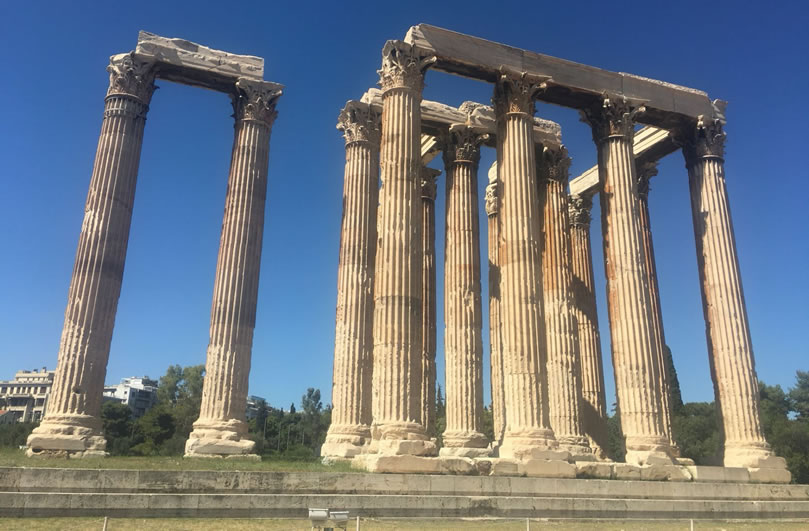 宙斯神廟 宙斯神廟位于希臘雅典衛(wèi)城東南面,是為了祭祀宙斯而建的,也是古希臘最大的神廟。宙斯神廟建于公元前470年,于公元前456年完工,由建筑師Libon設(shè)計,宙斯神像則由雕刻家菲狄亞斯負(fù)責(zé)。直到公元前86年,羅馬指揮官蘇拉(Sulla)攻占雅典,破壞了尚未完成的建筑,將一部分石柱和其他建材拆下來之后,運到羅馬。直到今天,在羅馬市中心的古羅馬廣場遺址上,還能看見它們。宙斯廟尤以象牙和黃金的塑像而聞名于世。 宙斯神廟是伊奧尼亞風(fēng)格的建筑,后來改用了科林斯式石柱風(fēng)格,而且一概使用大理石。整個建筑坐落在一塊205米長,130米寬的地基上,神廟本身長107.75米,寬41米,共有104根科林斯柱。每根石柱高達17.25米,頂端直徑達1.3米,約計用大理石1.55萬噸。和眾多的古希臘神廟一樣,宙斯神廟也遭受嚴(yán)重的破壞,104根柱子中僅存13根。宙斯神廟和哈德良拱門隔路相望,宙斯神廟位于路南,而哈德良拱門則位于路北,這兩座建筑都是由距今1900多年前的羅馬帝國國王哈德良時期修建的。我們已經(jīng)無法看到宙斯神廟和哈德良拱門的原始形態(tài),只能通過斷壁殘垣來回憶當(dāng)時的輝煌。