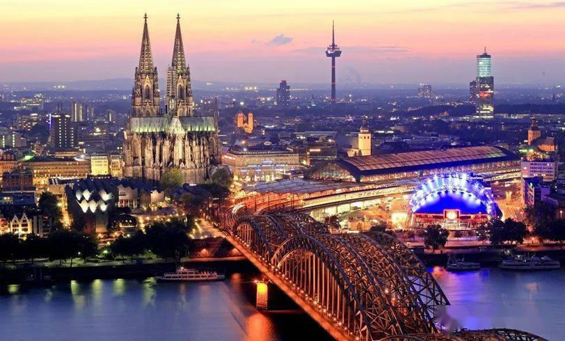 科隆 科隆市(Köln/Cologne)是德國的第四大城市,人口100.7萬,面積405平方公里,僅次于柏林、漢堡和慕尼黑,是一座大都市,市中高樓大廈鱗次櫛比,是一個繁華的商業(yè)城市,也是德國西部萊茵河畔歷史文化名城和重工業(yè)城市。 一譯“科倫”。公元前38年建為古羅馬要塞。曾是漢薩同盟主要成員。因位居歐洲東西和南北交通要沖,中世紀時經(jīng)濟已頗發(fā)達。十九世紀中葉后,隨魯爾煤田開發(fā)和鐵路修筑,發(fā)展更迅速。巨大水陸交通樞紐,重要的河港?坡-波恩航空站位于東南郊,市內(nèi)有通往布魯塞爾、波恩等地的直升飛機場。工業(yè)有軍工、冶金、機械、化學、制藥、煉油、紡織、食品等部門。全國重要褐煤產(chǎn)地之一,建有大火電站。全國金融中心之一。第二次世界大戰(zhàn)時遭嚴重破壞。多古跡,如著名科隆大教堂(圓頂上的兩塔尖高達161米)、羅馬時代地下廣場等。馬克思和恩格斯曾在此創(chuàng)辦《新萊茵報》。 科隆還是一個以羅馬式教堂和哥特式大教堂聞名于世的城市。屹立在萊茵河邊的科隆大教堂高157.31米,它有兩座哥特式尖塔,北塔高157.38米,南塔高157.31米?坡〈蠼烫檬鞘澜缟献罡叩碾p塔教堂,它已成為科隆市的象征和游客們向往的名勝之地。站在高高的塔頂極目遠望,萊茵河猶如一條白色的緞帶從旁飄過。