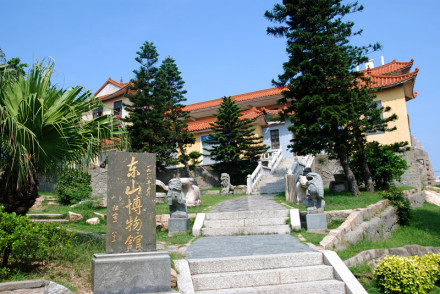 東山博物館,1988年6月開(kāi)館,1995年3月建成三層樓新館,建筑面積986平方米,占地1400多平方米,館內(nèi)設(shè)有“文物室”、“閩臺(tái)史前文化關(guān)系陳列室”、“陳洪甄書(shū)畫(huà)室”、“東山建縣八十周年建設(shè)成就回顧展“等展室。展出舊石器時(shí)代、新石器時(shí)代以及歷代文物、圖片、拓片等700多件。其中有東山人“化石”,萬(wàn)年前舊石器、各種動(dòng)物(鹿、熊、象、犀牛、羊)化石,還有石器、銅器、陶瓷器、玉器、木雕、古今兵器、書(shū)畫(huà)、民俗文物及一艘從臺(tái)灣飄來(lái)的臺(tái)灣高山族獨(dú)木舟等。