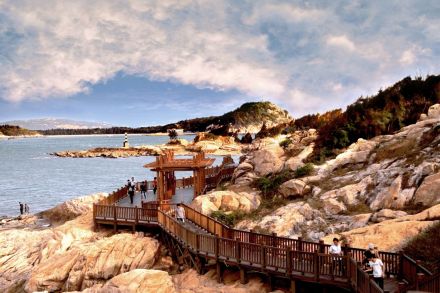 濱海木棧道是風(fēng)動(dòng)石景區(qū)近年來(lái)投入開(kāi)發(fā)的臨海棧道,供游人近距離感觸海洋魅力,欣賞海蝕景觀。