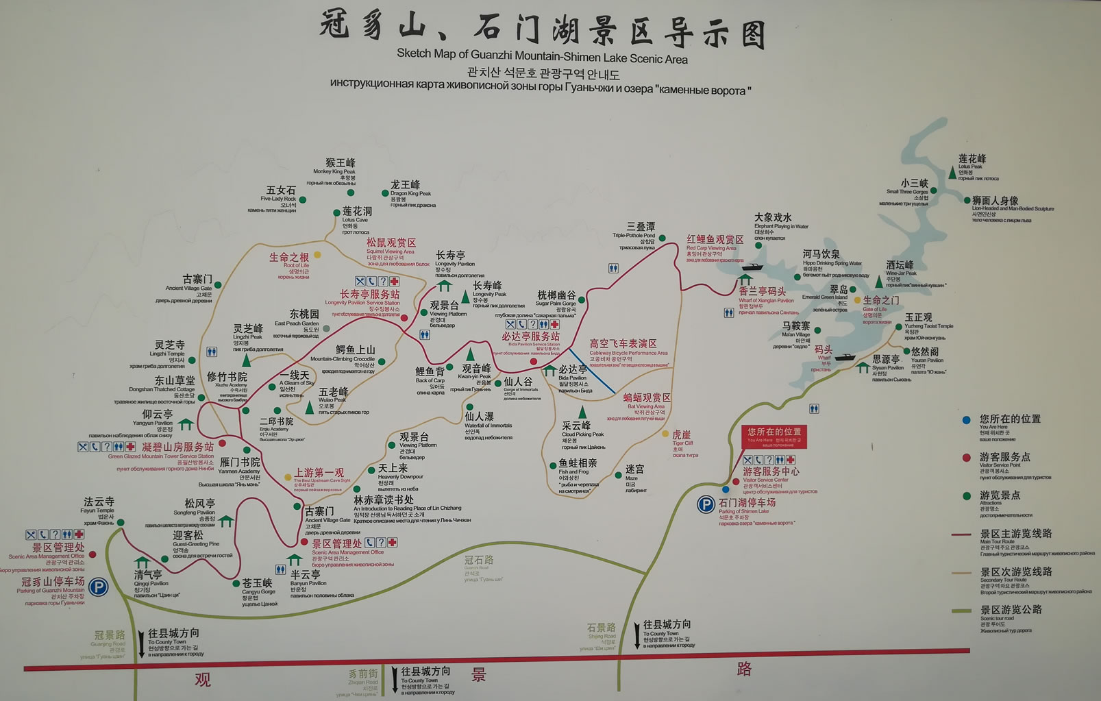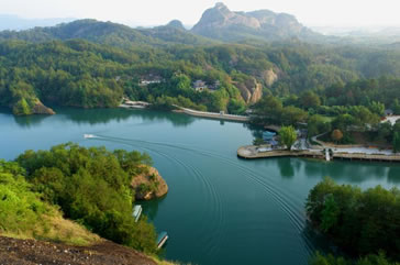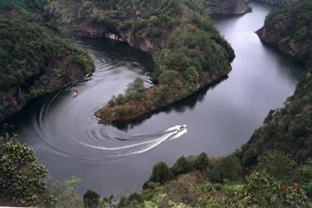 石門湖——坐落于冠豸山東南的石門湖,面積四百多畝,如一塊翡翠,鑲嵌在冠豸山的險(xiǎn)峰奇谷中,四周環(huán)山,“是連城昔日八景之一的"石門宿云"所在地。 要深度感受石門湖的清幽以及風(fēng)景如畫,選擇蕩舟其間,無疑是最好的方式。登上游船,緩緩前行,船漿劃破波光瀲滟的湖面,推動著小舟時(shí)而穿過狹窄的峽谷,時(shí)而閑庭信步開闊的湖面,“水轉(zhuǎn)山間走,山回水中行”,山風(fēng)習(xí)習(xí),清涼舒坦。山在慢慢后退,水在慢慢后退,眼看就到湖的盡頭,“山窮水盡疑無路”,卻“柳暗花明又一村”,豁然開朗處曲徑通幽,山環(huán)水繞,水傍山立。