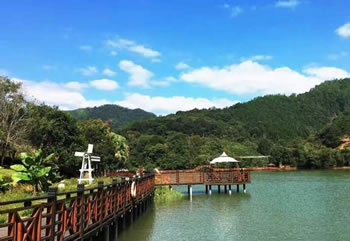 九鵬溪景區(qū)于2004年正式開發(fā),已建成九鵬溪食府、公館茶軒、茶田觀光、水上別墅等景區(qū)服務(wù)設(shè)施,開通往返14公里的水面游覽線路。景區(qū)圍繞“水上茶鄉(xiāng)”定位,以水體景觀為主體,融合森林旅游、人文旅游等特色,充分發(fā)揮茶山水景特色,依山筑景,傍水生趣,獨具匠心,別有情調(diào)。景區(qū)開發(fā)現(xiàn)已初具規(guī)模,休閑度假的配套設(shè)施齊全,建筑風(fēng)格質(zhì)樸大方,與環(huán)境和諧相融,充分體現(xiàn)了木質(zhì)建筑的魅力。這里有造型典雅裝飾豪華的“九鵬食府”;也有花樣精美各具特色的“美食風(fēng)味廣場”地方小吃。這里有環(huán)境幽雅的茶廳茶座;也有沿溪構(gòu)筑內(nèi)部設(shè)備先進(jìn)的“漁歌唱晚”小木屋,讓人親近自然,陶冶性情,凈化心靈。此外,水木年華會所已建成使用,健全的服務(wù)設(shè)施和游客至上的經(jīng)營理念,將為游客提供一流的服務(wù),創(chuàng)造了人與大自然和諧相處的環(huán)境,是最佳的休閑度假勝地。
