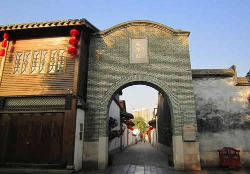 衣 錦坊是“三坊”中的第一坊,舊名通潮巷。據(jù)清《榕城考古略》記載:宋朝的“陸蘊(yùn)、陸藻兄弟典鄉(xiāng)郡居此,名祿錦,后王益祥致江東提刑任,更名衣錦。”宋時稱“祿錦”,明朝更為“衣錦”,其實都是說坊內(nèi)有人在外出仕做大官,之后衣錦還鄉(xiāng),榮耀鄉(xiāng)里,所以坊名也改為了“衣錦”。過去稱“通潮”,則是因為這個地方是水網(wǎng)地區(qū),福州西湖、南湖的潮水可以通到這個坊巷的溝渠里去。坊中16號為清嘉慶進(jìn)士鄭鵬程居宅,其中的衣錦坊水榭戲臺最具特色。這是一個木構(gòu)單層平臺,四柱單開間,下建清水池塘,中隔天井,正面為閣樓。于此觀看戲劇演出,水清、風(fēng)清、音清,具有聲學(xué)原理和美學(xué)價值,是福州市現(xiàn)存的水榭戲臺。