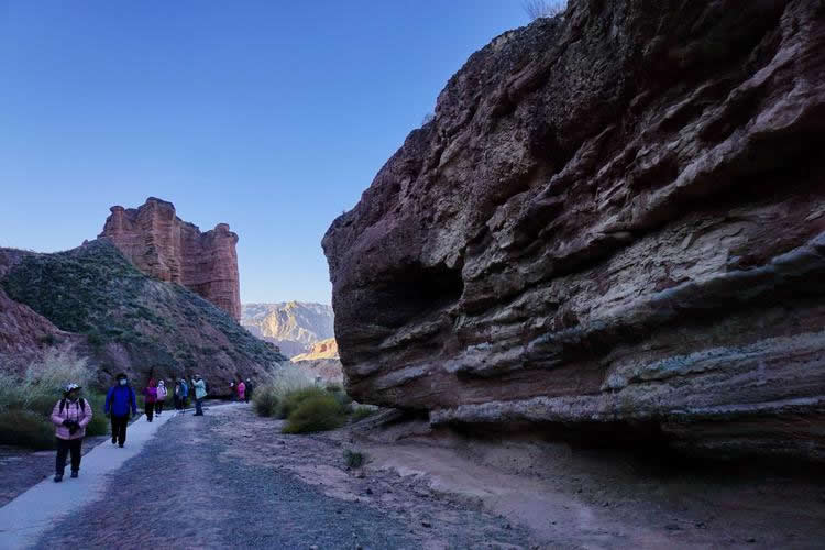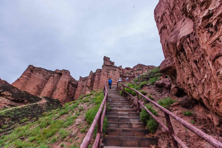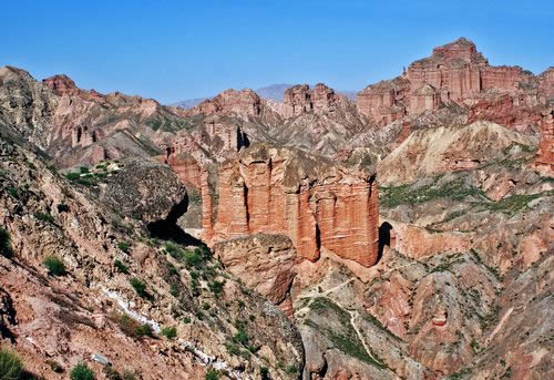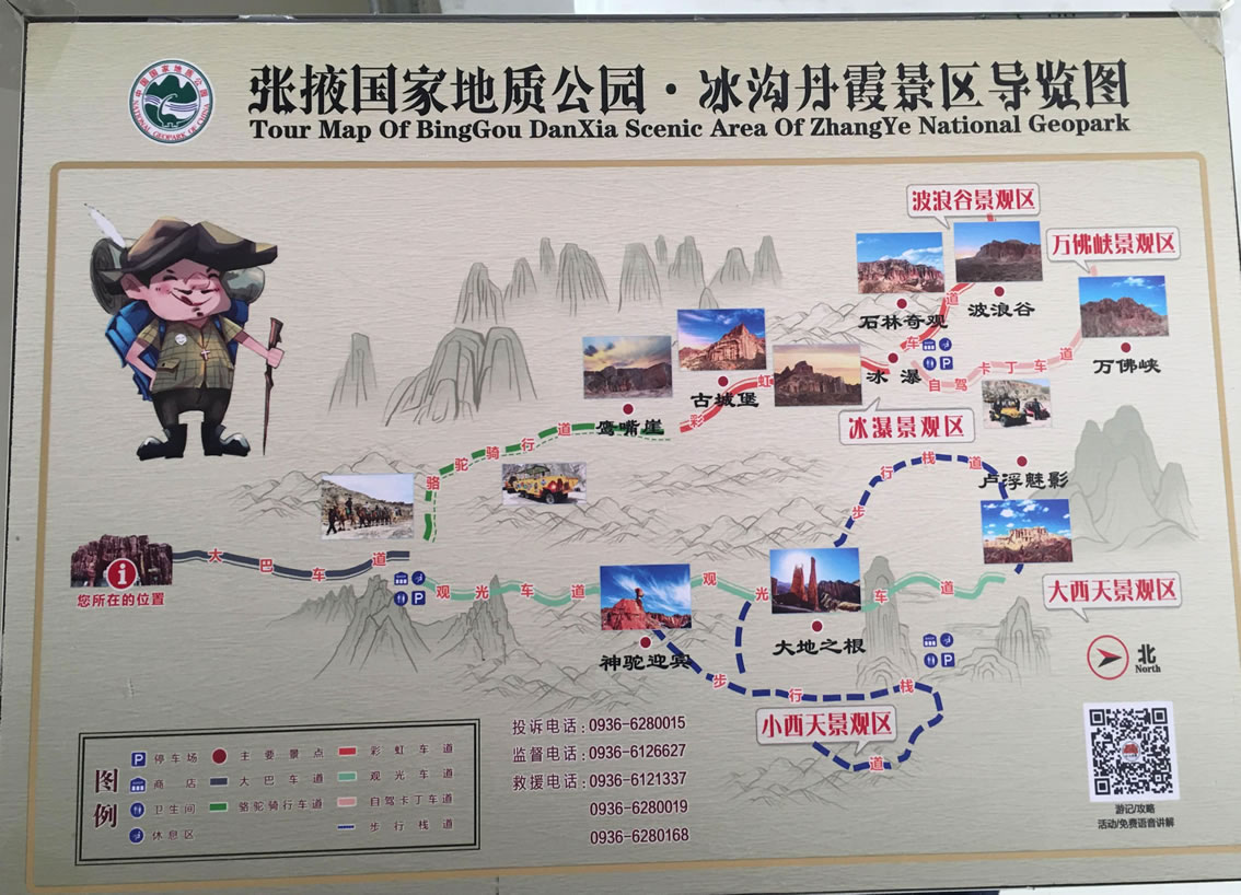 小西天景區(qū)位于冰溝景區(qū)的東部,主要景觀為一條滿布丹武地貌的山溝,均為長約800米的山體游步道,游覽時間大約60分鐘。主要景點(diǎn)有神駝迎賓、紅層地貌、泥瀑布、泥鐘乳、泥葡萄、桃園結(jié)義(新娘出嫁、樓蘭商駝、千里相會)、玄武門(龜蛇鎖江)、紅纓帽(裕固族帽子)、陰陽柱(大地之根)、石雞(筆架峰)、七女峰(侍女拜佛)、僧人崖、金蟾拜佛、大佛石等,最有名氣的有神駝迎賓、桃園三結(jié)義、玄武門、蘑菇石、大地之根、七女峰、望夫石等景觀。