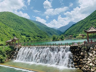 大河壩景區(qū)(娥嫚溝)則是一副畫(huà)卷,山清水秀,鳥(niǎo)語(yǔ)花香,峰回路轉(zhuǎn),曲經(jīng)通幽,大面積的原始森林是一個(gè)天然氧吧,海拔4153米的雷古山,是隴南最高峰,山頂是終年不化的積雪,雪線以下是云霧繚繞的茫茫林海,既有黃山之雄偉,又有華山之奇險(xiǎn)。置身期間,野趣橫生,心曠神怡,有柳林臥龜,石門天塹,補(bǔ)天石,神龜戲水,金樽瀑,回音壁,賽馬灘,雷古雄峰等主要景點(diǎn)供游客觀賞。