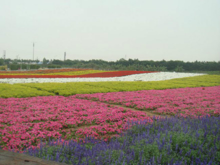 融匯日本北海道富良野的時(shí)尚文化,以薰衣草為主打色,栽植七種不同花卉,盛開色彩繽紛的花帶,黃的、紅的、金的、白的,紫色,綠的、橙的,2萬多平方米的花海,形成一個(gè)巨型的七彩花帶,構(gòu)成一幅大地上的七色彩虹,生動(dòng)而美麗。