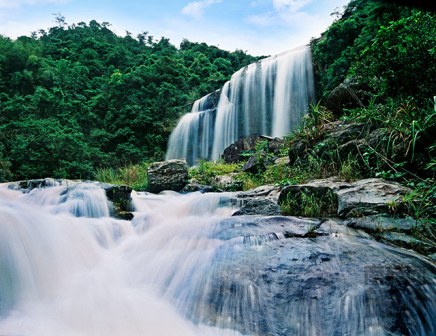 黃滿寨瀑布群旅游區(qū)是國家4A級旅游景區(qū),位于廣東省揭陽市揭西縣。黃滿寨瀑布群旅游區(qū)自上而下共分五級:一級是寬82米、落差56米的飛虹瀑布,三股水流分別從頂端飛懸而下,盛水時節(jié),更是連成一片,形若貴州黃果樹瀑布。繼續(xù)向前,下行約百米又形成銀河崆瀑布,飛瀑撞擊巖石。沿水往下是落差約120米的落九天瀑布,兩邊巖石高起。在下游是三疊谷瀑布,水流在三個落差各6米的斷崖處唱陽關三疊,三個瀑布錯角相連。最下為第五級瀑布斗方崆瀑布。黃滿寨瀑布群景區(qū)所在的山谷比較幽深,山間林木茂盛,瀑布群鑲嵌在深山峽谷中。