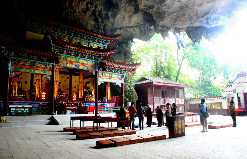 水源洞旅游景區(qū)位于凌云縣城北百花山下,距凌云縣城約1千米,也是廣西壯族自治區(qū)重點文物保護(hù)單位,百色市十八景之一。水源洞景區(qū)分為內(nèi)洞和外洞兩部分。洞外綠堤兩道,垂柳、古榕遍岸,飛鳥爭鳴,兩座對稱排列的石拱小橋,古樸典雅。洞內(nèi)有占地22000平方米、寬38米、高20.8米的大廳。洞門最高處的山崖絕壁上,刻有乾隆四十三年(1778)左江觀察使王玉德所題的“第一洞天”,大廳四周絕壁上刻有明、清以來文人墨客的題字、題聯(lián)、題詩80余幅,是凌云縣古石刻最集中、保護(hù)最完整的地方,展示了凌云近千年的州、府、縣建制歷史文化。