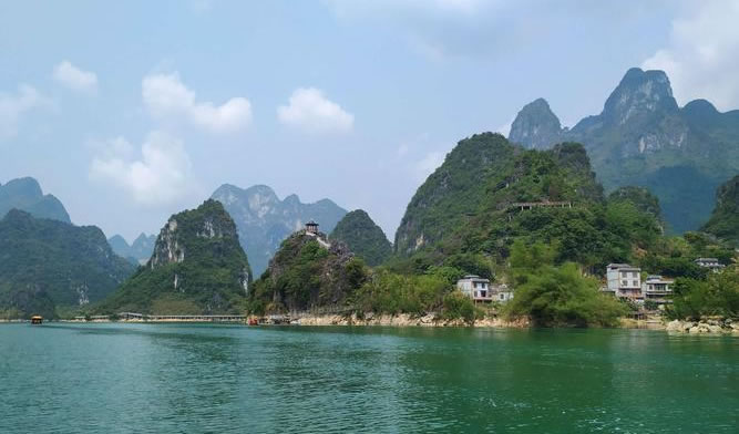 浩坤湖,位于百色市凌云縣下甲鎮(zhèn)和伶站鄉(xiāng)交界的地域,是澄碧河水系堵洞而成的湖,湖長6公里,湖寬50至1500米。豐水期湖面面積約20平方公里。 浩坤湖發(fā)源于青龍山的澄碧河是珠江源之一,澄碧河水自水源洞噴流而出,先在洞口盤根錯節(jié)的千年古榕下聚成一彎綠瑩瑩的湖,再流穿過凌云縣城中心曲曲折折地流出城外去。澄碧河穿過泗城,流經(jīng)一個叫下甲的地方,在彩架鉆入地下,潛行5公里后在弄盤露出地面,河水流經(jīng)下甲弄盤至伶站浩坤一帶受阻而成湖,這就是浩坤湖。 浩坤湖是凌云這高山林立的地方最大的一片水面,古時叫東湖, 俗稱高山神湖。湖山秀美、岸線曲折,島渚星羅,幾十座山峰緊緊挾攜著一湖碧水,湖內(nèi)島嶼交錯,水天一色,兩岸山奇崖秀:巨龍入地,掌上明珠、情蛙對語、望子牧歸、雞犬相聞、神駝昂首、相思夢縈,岸上花艷竹翠,藍(lán)天青山倒映水中,山水天渾然一體,令人陶醉,湖面寬闊,水質(zhì)清澈,自然風(fēng)光十分優(yōu)美,岸畔竹影婆娑,釣翁頻現(xiàn),花樹掩映,黃髫小兒戲水,馬兒羊羔撒歡,老牛吃著嫩草,一派溫馨和諧、天人合一景象,是美麗南方中一片難得的自然景觀。具有良好的水上觀光、度假旅游的自然地貌基礎(chǔ)。