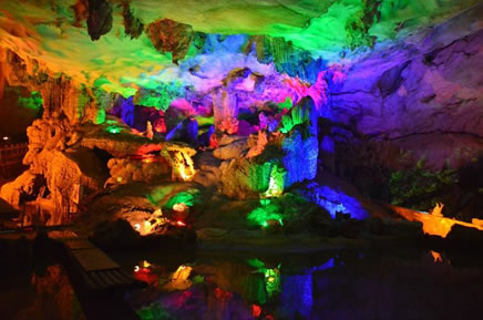 冠巖地下河游覽區(qū)是桂林有名的旅游溶洞之一,本世紀(jì)九十年代初,桂林華之冠旅游開發(fā)有限公司對冠巖進(jìn)行了全方位科學(xué)合理性的開發(fā),按高起點、高標(biāo)準(zhǔn)設(shè)計建立了多種游覽方式,洞內(nèi)共有5種游覽方式:步行(行程約1000米);乘坐觀光滑道(洞內(nèi)滑道來回約500米);乘觀光電梯(電梯高約36米,亞洲觀光第一梯),乘坐洞內(nèi)小火車(小火車長約30米,可載客108人,行程約500米);在地下河浮橋中漫步(行程約500米,洞中有世界巖洞第一瀑,地下河瀑布)。多種現(xiàn)代游覽設(shè)施與洞內(nèi)景色相輔相成,使冠巖成為國內(nèi)獨具特色和韻味的水陸空游覽洞穴。