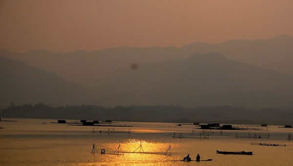 西湖三面臨山,東有高聳云際的白云山;西有惟妙惟肖的雞籠山;南有象山橫截江流,氣勢雄渾,視野開闊。湖區(qū)景物,依時而變,氣象萬千。春泉傾瀉,珠玉飛灑;夏雨新霽,青山如洗;秋收時節(jié),魚翔簇簇,汽艇竹筏,去來繁忙;冬日白雪,或蓋山頂,或掛枝頭。