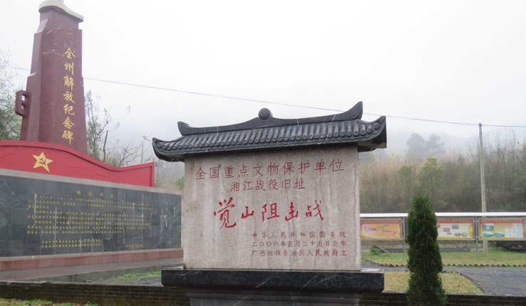 紅軍長征湘江戰(zhàn)役紀念園位于桂林市全州縣才灣鎮(zhèn)境內(nèi),是湘江戰(zhàn)役三大阻擊戰(zhàn)之一——覺山鋪阻擊戰(zhàn)遺址所在地。距離全州縣城15千米,距離高鐵全州南站12千米,距離全南高速全州西路口8.3千米。湘江戰(zhàn)役紀念園項目設計規(guī)劃占地面積約為64.67公頃,主要包括湘江戰(zhàn)役紅軍烈士紀念林和紅軍長征湘江戰(zhàn)役紀念館及相關配套設施。2019年被評為AAAA級景區(qū)。