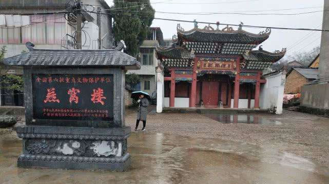 燕窩樓,位于全州縣永歲鎮(zhèn)石崗頭村,距全州城十五千米,原是蔣氏祠堂,明代弘治乙卯八年(1495年),蔣建德始籌建逝卒未成,其子蔣淦迨明正德辛末六年(1511年)中進士后擢任工部侍郎,皇帝賜封他親自設計主持將祠樓修建而成,因牌樓上的如意斗拱形似燕窩,故名燕窩樓。燕窩樓坐北朝南,由牌坊和門樓兩部分組成,寬11.13米,進深12.8米,通高8米,面積為142.4平方米,面闊三間,進深四間,第一進深間為牌坊,后三間為門樓。