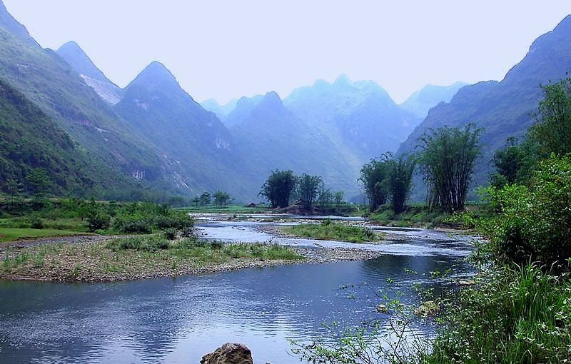 地形地貌 大化瑤族自治縣地處云貴高原余脈,都陽山脈自北向南跨過全境,地勢(shì)北高南低。北部海拔一般在500~800米,最高系板升─七百弄山區(qū),海拔一般在900~1000米,最高山峰七百弄鄉(xiāng)的弄耳山,主峰海拔1108米。南部海拔一般在150~300米?h域地貌按成因分類有巖溶(喀斯特)地貌、剝蝕侵蝕低山丘陵地貌、河谷地貌三種類型,其中以巖溶地貌為主,境內(nèi)峰巒疊嶂,洼地密布,號(hào)稱“千山萬弄”,僅七百弄鄉(xiāng)就有大小弄場(chǎng)1300多個(gè),而有人煙的僅324個(gè)。