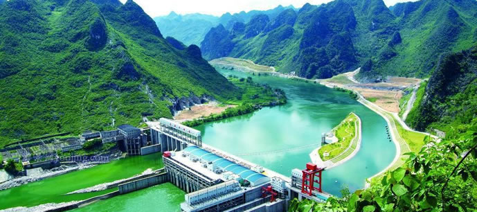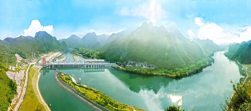 樂灘(惡灘)水電站庫(kù)區(qū)的紅水河源出于云南省沾益縣的南盤江,經(jīng)貴州流入廣西,是廣西以壯族為主體的少數(shù)民族的母親河、太陽(yáng)河。紅水河是中國(guó)少有的水電資源。正在擴(kuò)建中的樂灘(惡灘)水電站預(yù)算投資39.7億元,裝機(jī)容量為60萬(wàn)千瓦,年均發(fā)電量為35億千瓦時(shí),是紅水河上的十個(gè)梯級(jí)水電站之一。