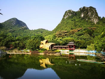 劉三姐大觀園原名桂林劉三姐景觀園,位于桂林城區(qū)西部獅子巖,坐落在風(fēng)景秀麗的桃花江畔,東靠西山,西望甲山,前臨漓江的支流桃花江。景區(qū)以壯族歌仙劉三姐命名,是一座展示劉三姐文化及廣西少數(shù)民族文化經(jīng)典的主題游園,在這里游客可以零距離領(lǐng)略和體驗(yàn)劉三姐文化及廣西少數(shù)民族文化精粹和樂趣。園外山清水秀,倒影如畫,有桂林古八景“西峰夕照”、桂林續(xù)八景“陽江秋月”;園內(nèi)亭臺樓榭、峰峻洞幽,有桂林生態(tài)樂園之最百鳥園;有電影《劉三姐》的壯樓、莫府。