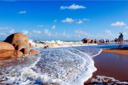 三娘灣位于欽州市南部犀牛腳鎮(zhèn)境內(nèi),距欽州市區(qū)38千米、南寧168千米、北海100千米,南臨北部灣,背倚烏雷嶺,是中華白海豚之鄉(xiāng)、電影《海霞》拍攝地。三娘灣以碧海、沙灘、奇石、綠林、漁村、海潮、椰林、中華白海豚而著稱, 2005年被評為“廣西十佳旅游景區(qū)”。有海上精靈中華白海豚,其中三娘石、鎮(zhèn)海石狗、“海霞姑娘”—三娘灣女子民兵隊(duì)、漁家旅館等景點(diǎn)。