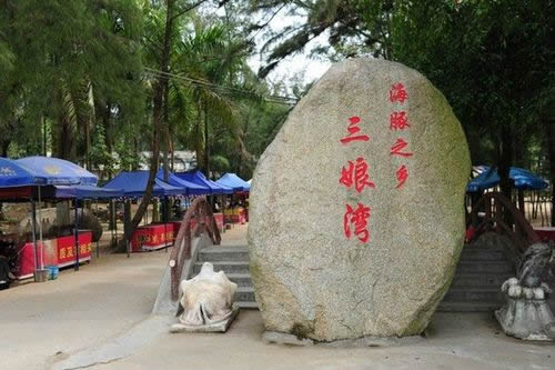 三娘灣景區(qū)以碧海、沙灘、奇石、綠林、漁船、漁村、海潮、中華白海豚而著稱,擁有“中華白海豚之鄉(xiāng)”美稱,由三娘石、母豬石、烏雷嶺、威德寺等景觀景點(diǎn)組成,是著名電影《海霞》的外景拍攝地和中央電視臺MTV《灣灣歌》和20集電視劇《海藤花》的拍攝基地。