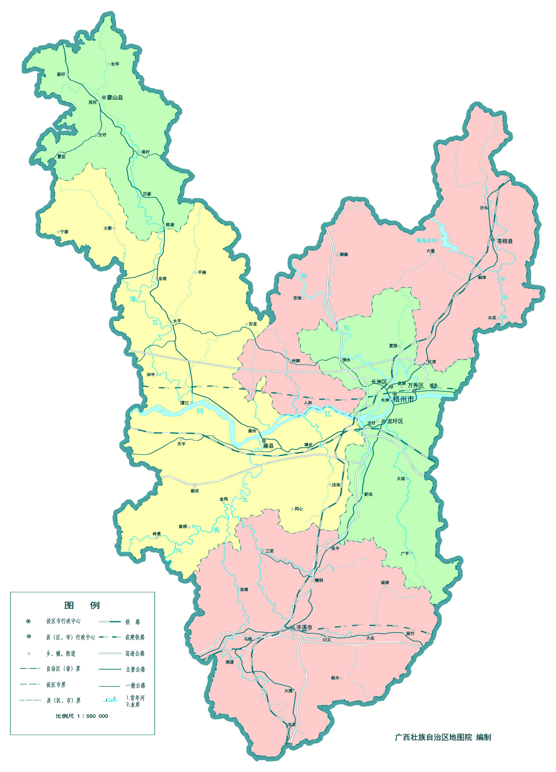 梧州市轄3個市轄區(qū)、3個縣、代管1個縣級市: