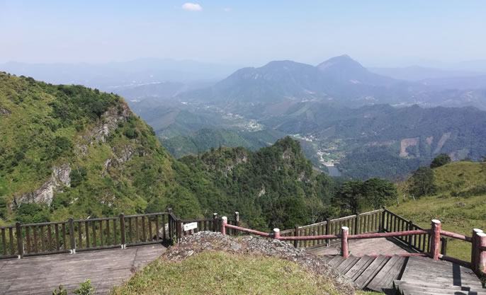 天龍頂國(guó)家山地公園位于岑溪市南渡鎮(zhèn),占地面積15平方千米。景區(qū)主峰天龍頂海拔1221米,相對(duì)高度221米,屬云開(kāi)大山山脈的主峰。景區(qū)內(nèi)海拔高于1000米以上的山峰還有石豹頂、公婆頂、湖廣頂?shù)人淖椒。景區(qū)的自然資源具有多樣性,景區(qū)內(nèi)有高山湖泊、原始森林、溝壑峽谷、溪谷瀑布群、海拔1000米之上的高山草甸、海拔1200多米的丹霞山峰、延綿近數(shù)十里的斷層崖壁等等,形成了一個(gè)具有旅游觀(guān)光、休閑度假、戶(hù)外運(yùn)動(dòng)等多功能的復(fù)合型景區(qū)。同時(shí),天龍頂國(guó)家山地公園也是一個(gè)純天然自然氧吧,空氣中負(fù)離子含量高達(dá)35000個(gè)/立方米。
