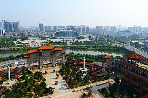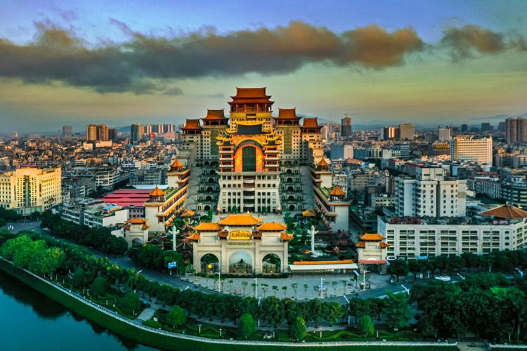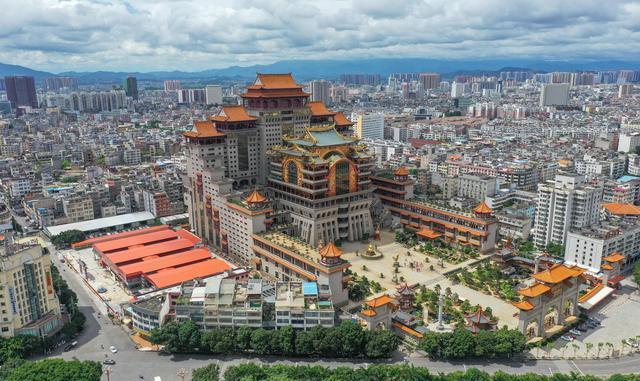 云天文化城又稱云天宮,位于玉林市江濱路,南流江畔。是一座以濃縮中國古今傳統(tǒng)文化和著名建筑風格為一體的巨型仿古宮殿式建筑。占地面積為14萬平方米,主體建筑高21層共108米。云天文化城以石雕、木雕、鑄銅三大系列藝術(shù)性的呈現(xiàn)中華名族的歷史文化,以創(chuàng)新的手法為中國上下五千年的文化做傳承。點睛之作是六樓閣樓高30米,重達600噸用1千多片銅片組成的硫金鑄銅工藝品“皆大歡喜”。