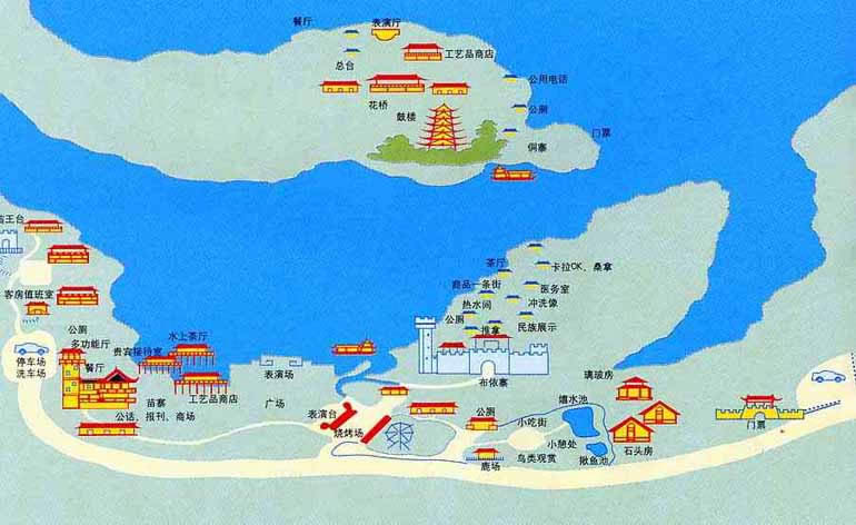 尤其值得一提的是,紅楓湖民族村。民族村由侗、苗、布依3個(gè)村寨組成,3個(gè)村寨都建在島上,隔水相望,相互呼應(yīng)。