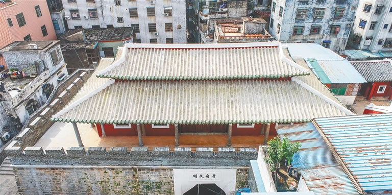 瓊山縣學宮位于府城文莊路5號,據(jù)清朱為潮篡《瓊山縣志》載:文廟始建于宋代,原設在?谄,歷代多次遷移,最后置于府城南門和護城河北邊300米處,即今遺址。 明洪武四年(1371年),瓊山知縣李思迪遷建于府城東北東坡書院內(nèi)(即今蘇公祠)。九年,知縣陳概又遷建于府城南郊。弘治十一年(1498年),廣東按察司副使陸淵遷建于府學之西,即今遺址。遷建后的縣學宮居于城內(nèi)鬧區(qū),靠近府署,接鄰府學宮,方便了生員習禮和各種慶典活動。 清光緒二十三年(1897年)秋,瓊山名士林之椿、曾對顏、粘世王召、王國棟、柯玉珊、王駿聲、孫生英等人發(fā)起重修。 瓊山縣學宮原有后殿、大成殿、東廡、西廡、欞星門、丹墀等建筑,十分雄偉壯觀,為瓊山縣歷代儒學教育機構(gòu),占地面積最大時“直500尺,橫128尺,面積64000方尺”。學宮現(xiàn)僅存大成殿,面闊5間,進深3間,坐南朝北,重檐歇山頂。梁架結(jié)構(gòu)為七架木結(jié)構(gòu)式,梁檁之間雕刻精美的龍獅、蓮花、卷云、紋刻,莊重典雅。2013年,瓊山縣學宮大成殿重修完成,現(xiàn)為海南省重點文物保護單位。