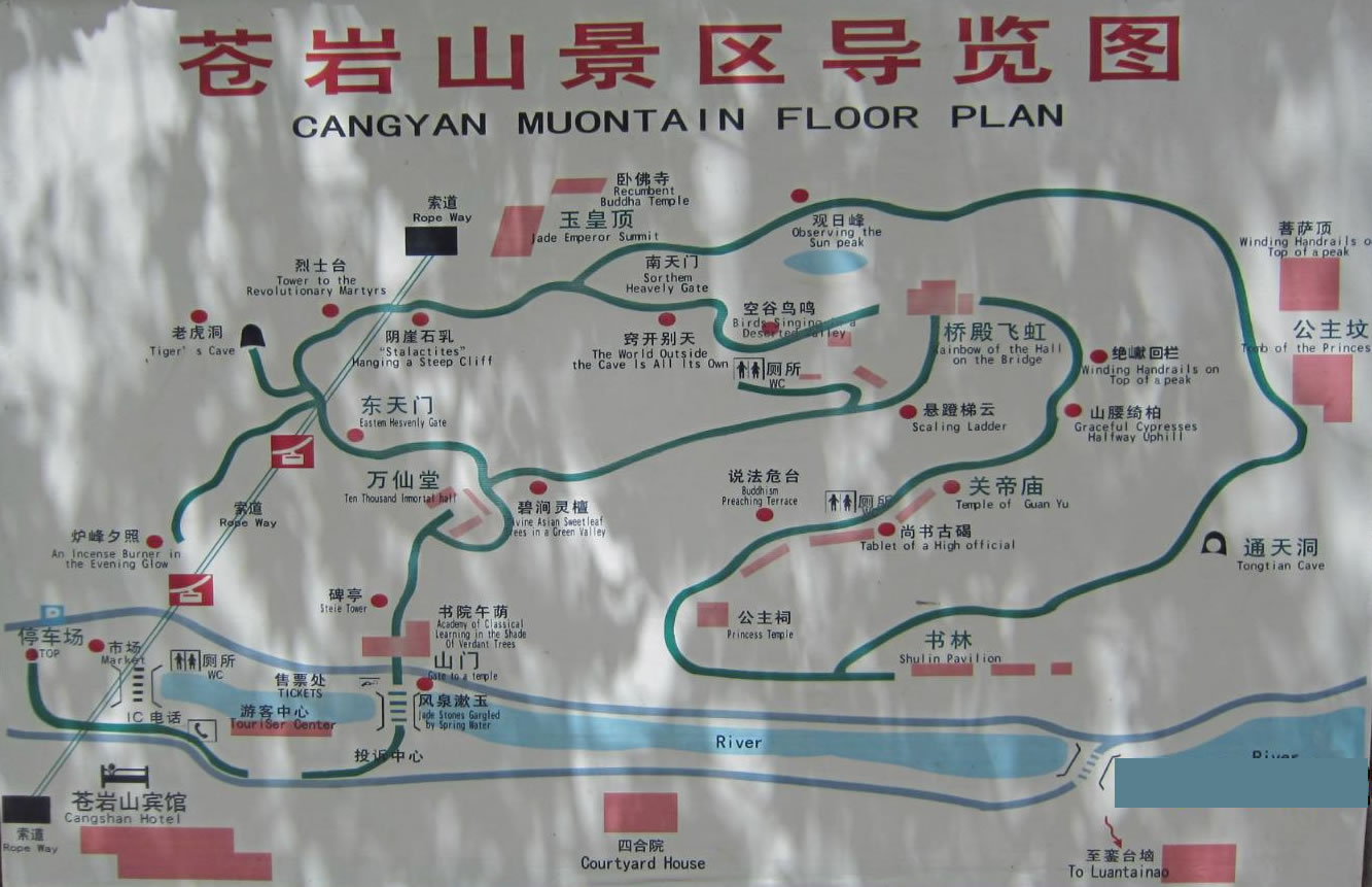 蒼巖山有著名的十六景,景景入勝,步步宜人。為:巖關(guān)鎖翠、風泉漱玉、書院午蔭、碧澗靈檀、懸登梯云、橋殿飛虹、峭壁嵌珠、絕獻回欄、空谷鳥鳴、懸崖奇柏、說法危臺、虛閣藏幽、尚書古碣、陰崖石乳、竅開別天、爐峰夕照。