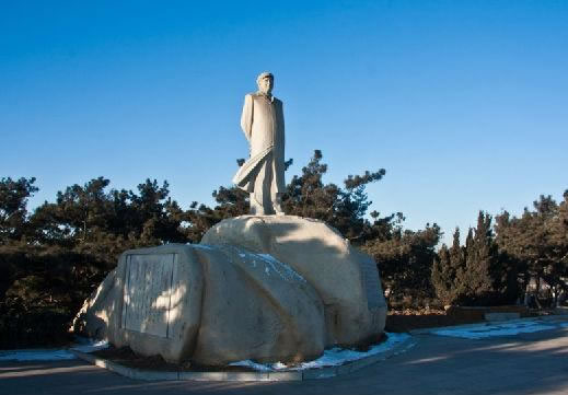 主席雕像高3.2米,仿花崗巖基坐高2.7米,在基座東部用大理石刻著毛澤東的詞《浪淘沙·北戴河》。塑像是北戴河區(qū)政府1992年為紀念毛澤東誕辰100周年而敬塑的。