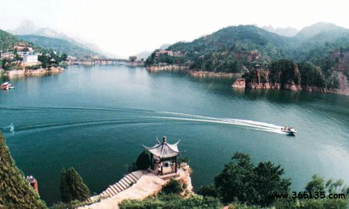 太行三峽—京娘湖 東太行山武安市京娘湖,據(jù)馮夢龍編《警世通言》記載,宋太祖趙匡胤千里送京娘曾路宿于此山中。京娘是山西永濟人,年方十七歲, 隨父母去曲陽燒香還愿遭劫,幸遇趙匡胤拔刀相救,千里護送,京娘感恩不盡,欲以終身相托。然而趙曰:“賢妹非是俺膠注鼓瑟,本為義氣千里相送,今若就私情與那個響馬何異?況施恩圖報非君子所為 。”京娘道:“恩兄高見,妾今生不能補報大德,死當(dāng)銜環(huán)結(jié)草。 ”于是京娘投湖自盡,(后被追封為貞義夫人)京娘湖亦由此得名。 湖面呈倒“人”字型,分東西兩支,水面2445畝,水深20-50米。中間 山島建有“山頂公園”清山綠水與藍天白云相互輝映,薈萃人典故, 使此地有“太行三峽”之美稱,尤其是巖壁上當(dāng)年趙匡胤“云崖寄志 ”的題詞手跡“欲出未來光辣撻,千山萬水如火發(fā)。須臾走向天上來 ,趕卻殘星趕卻月”。及其它歷史傳說,使景區(qū)更加神秘誘人。這里 層巒疊嶂,群峰竟秀,波光粼粼,林林茂盛。夏季炎熱之時,清爽宜 人,為避暑勝地。