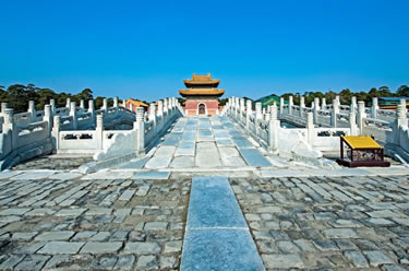 陵區(qū)內(nèi)千余間宮殿建筑和百余座古建筑、古雕刻。每座陵寢嚴(yán)格遵循清代皇室建陵制度,皇帝陵、皇后陵、王爺陵均采用黃色琉璃瓦蓋頂,妃、公主、阿哥園寢均為綠色琉璃瓦蓋頂,這些不同的建筑形制,展現(xiàn)出不同的景觀和風(fēng)格。