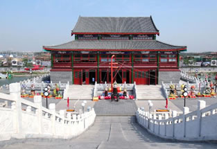 盛樂坊:“盛樂”取自《禮記.月令》,命有司,為民祈祀山川百源,大雩(yu)帝,用盛樂!蚌А,是古代的一種祭禮,說的是古代每到夏季的第二個(gè)月,用盛大的舞樂隊(duì)伍祭祀天地及山林川澤之神,祈求風(fēng)調(diào)雨順,五谷豐登,具有節(jié)日的氣氛。這個(gè)牌坊與對(duì)岸的大戲樓遙相輝映。