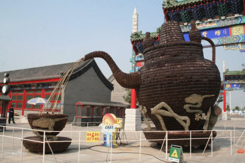 本燈組取材于唐山民俗文化,燈組以茶湯大銅壺為主體形象,古色古韻。茶壺采用特殊材料棕色藥瓶來制作,茶壺倒出茶水時(shí)會(huì)有流水追光效果,讓觀眾仿佛能夠聞到茶香四溢。