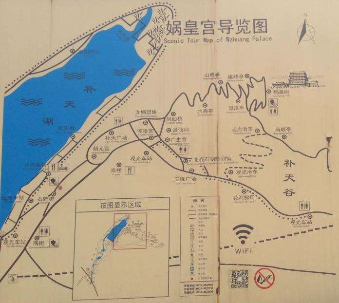 這里有女?huà)z文化廣場(chǎng),山頂建筑兩部分組成,主體建筑媧皇宮依山就勢(shì),結(jié)構(gòu)奇特,獨(dú)具匠心,有吊廟、活樓之稱(chēng),媧皇閣、梳妝樓、迎爽樓、鐘樓等最具風(fēng)采,媧皇閣緊傍懸崖,通高23米,以9根鐵索系于崖壁,游客多時(shí),樓體晃動(dòng),鐵索朗朗作響。